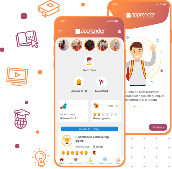 Após adquirir o curso, você pode estudar no aplicativo Apprender